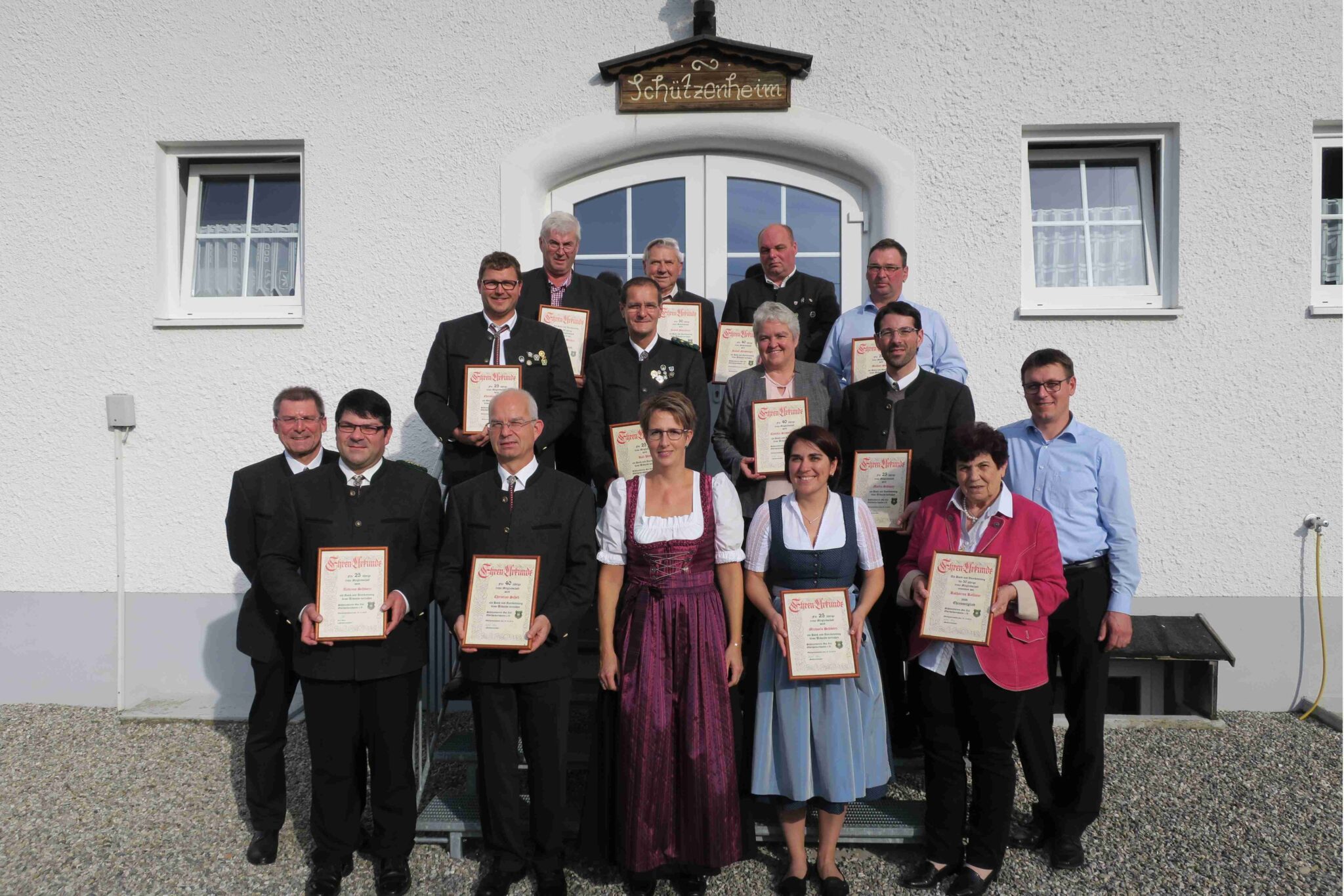 Nach den Neuwahlen gab es noch viele Ehrungen für langjährige Vereinszugehörigkeit (Foto). 25 Jahre dabei sind Christian Ableitner, Elisabeth Gründer, Ralf Witte, Michael Steber sowie Adreas, Martin und Michaele Schwarz. Für 40-jährige Vereinszugehörigkeit wurden Sabine Dinkel, Anton Kiser, Josef Kraut, Rudolf Meisburger, Wolfgang Oswald, Christian Scheb und Claudia Siedersberger geehrte. Ein halbes Jahrhundert dabei sind Willibald Büchler, Katharina Keller, Marianne Peschl und Rudolf Petermier. Sophie Aichner wurde zum Ehrenmitglied ernannt.